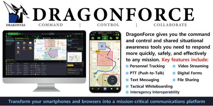 DragonForce is a command and control, team collaboration platform that provides a “Common Operating Picture” and shared situational awareness to users during mission critical operations.